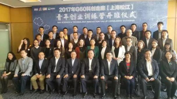 上圖為2017年11月2日松江區政府組辦的“G60科創走廊青年創業訓練營”開班儀式,區委書記程向民出席儀式并講話。企??萍紙@區2家入駐企業——企福振中科技園入駐企業上海燁柏自動化設備有限公司總經理溫燁博、企福中山科技園入駐企業的上海九烈焰防水材料有限公司鐘鄧川紛紛入選訓練營并與程書記合影。