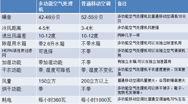 多功能空氣處理機(jī)與普通移動空調(diào)對比: