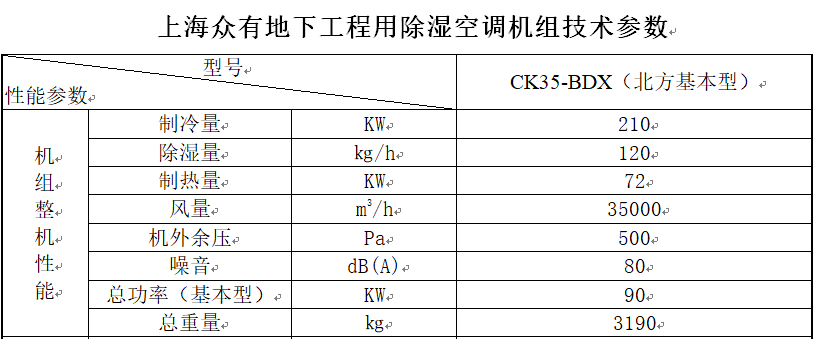 本設(shè)計(jì)方案選用了我司自主研發(fā)的CK35-BDX地下工程用除濕空調(diào)機(jī)組,共含主機(jī)段、送風(fēng)機(jī)段、空氣處理段、混風(fēng)過濾段,每一個(gè)環(huán)節(jié)都選用上等材質(zhì),確保性能。