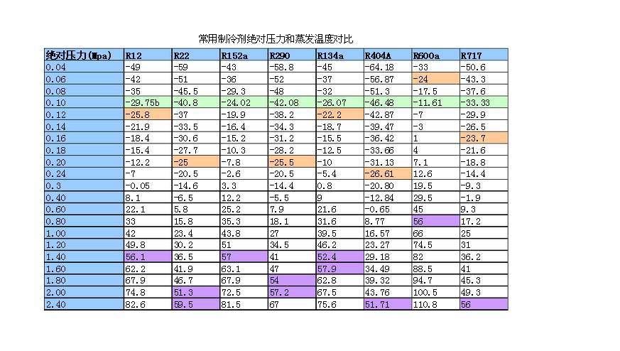 在制冷劑流量一定時(shí),蒸發(fā)壓力越低,蒸發(fā)溫度越低,這時(shí)與熱負(fù)荷(熱風(fēng))的溫差就越大,制冷量越大,換言之,蒸發(fā)壓力越低制冷量就越大,并且相同質(zhì)量的同一制冷劑,在不同的溫度下蒸發(fā),其蒸發(fā)潛熱也不相同,蒸發(fā)溫度越低,蒸發(fā)潛熱也越大,吸熱能力越強(qiáng)。