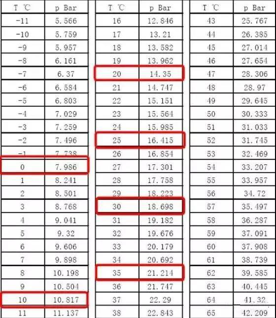在制冷劑冷凝過程中,如果冷凝壓力一定,冷凝溫度也是一定的。它們之間的關(guān)系是一一對應(yīng)的。R410A為例,它們的關(guān)系是: