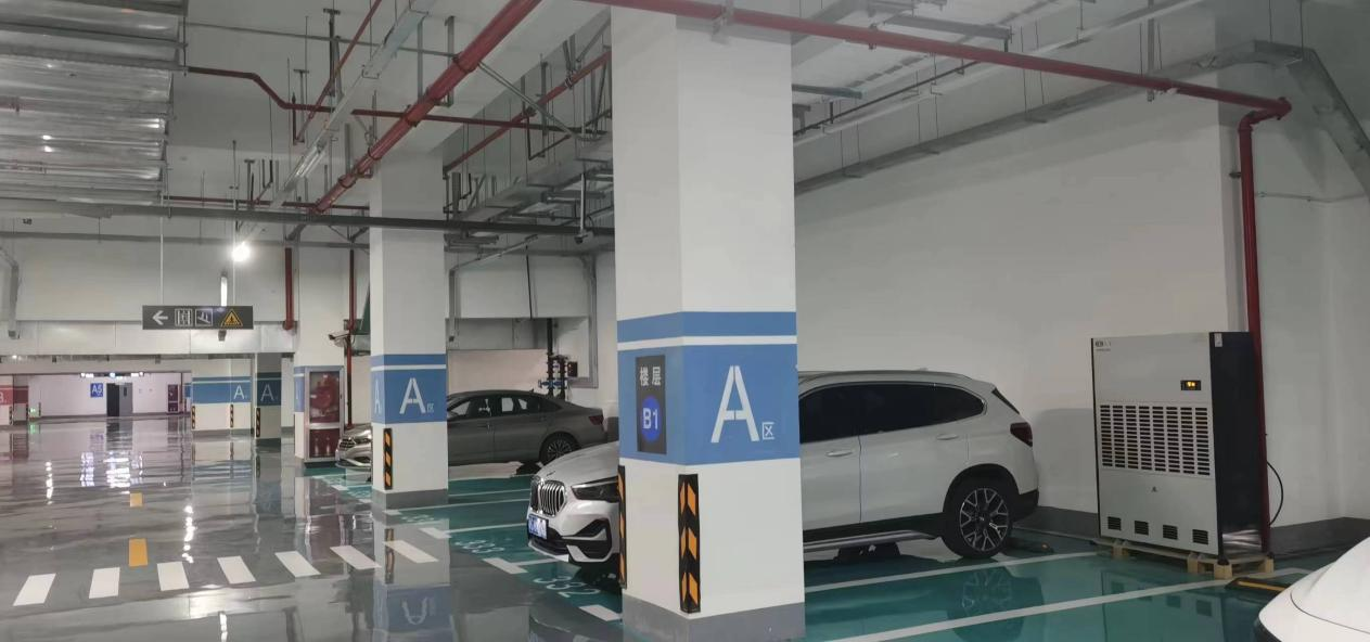 針對(duì)這一問(wèn)題,非眾安裝了10臺(tái)20公斤除濕機(jī),通過(guò)快速有效地去除潮濕空氣,使地下車庫(kù)內(nèi)的空氣變得相對(duì)干爽舒適。這些除濕機(jī)能夠?qū)⑹覂?nèi)濕度始終控制在60%RH以下,從根本上解決了地下車庫(kù)的潮濕問(wèn)題。