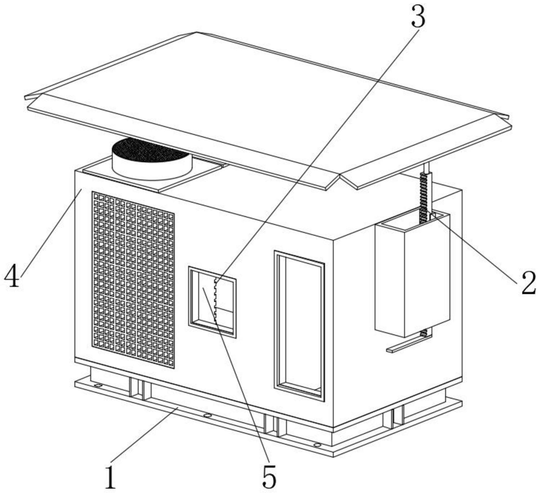 一體式的屋頂空調(diào)機(jī),專利號(hào):ZL 2024 2 0258431.7,涉及空調(diào)技術(shù)領(lǐng)域,而本實(shí)用新型包括槽鋼底座,槽鋼底座的頂端固定連接有空調(diào)機(jī)本體,空調(diào)機(jī)本體的內(nèi)部設(shè)置有散熱片,空調(diào)機(jī)本體的上內(nèi)壁設(shè)置有配合散熱片使用的清理組件,空調(diào)機(jī)本體的一端上部設(shè)置有防雨組件,防雨組件包括連接殼,連接殼的一端與空調(diào)機(jī)本體的一端上部固定連接,連接殼的一側(cè)內(nèi)壁固定連接有第一支座,第一支座的頂端固定連接有第一電機(jī),且第一電機(jī)的輸出端固定連接有第一錐齒輪,本實(shí)用新型通過設(shè)置防雨組件,起到便于使得空調(diào)機(jī)具有防水功能的作用,提高了空調(diào)機(jī)的實(shí)用性,通過設(shè)置清理組件,起到便于對(duì)空調(diào)機(jī)中的散熱片表面灰塵進(jìn)行清理的作用,提高了空調(diào)機(jī)的使用效果。