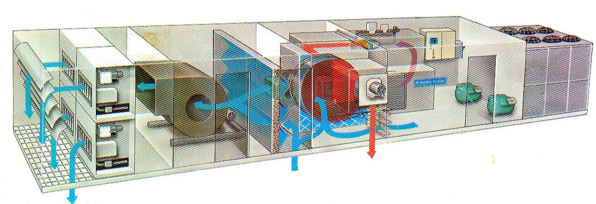 轉輪除濕機的工作流程可分幾個部分完成:預冷 / 預熱( 供選件 ) — 轉輪除濕 —后冷 / 后熱( 供選件 )