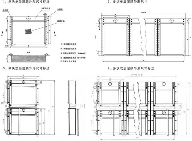 潔凈的自來水通過進水管路進入循環水箱中,通過進水開關控制其高水位;當加濕器工作時,循環水泵將水箱中的水輸送到加濕器頂部的淋水器,淋水器確保水均勻分配到濕膜材料上,水從濕膜材料頂部向下滲透,同時被濕膜材料吸收,形成均勻循環水的水膜;當干燥的空氣通過加濕器時,一部分水與空氣接觸,汽化、蒸發,使空氣濕潤(即濕度增加);另一部分沒有蒸發的水從加濕器低部流回循環水箱;循環水箱中的水通過循環水泵反復循環使用,從而使通過濕膜的空氣得到加濕。當循環水箱中的水位有所下降時,進水開關開啟,給水箱補水,確保水箱的水位維持在設定的高度范圍;當循環水箱中的水位下降到一定高度時,水箱內的低水位開關工作,確保循環水泵在缺水的情況下停止運轉。循環水濕膜加濕器結構圖當循環水箱內的水循環一定時期后,通過水箱的排水口將水排出,清洗水箱,置換干凈的水,保證了循環水和被加濕的空氣不被二次污染。